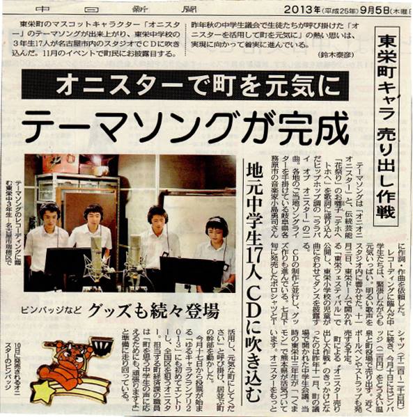 中日新聞、読売新聞、朝日新聞、岐阜新聞、日経新聞、中部経済新聞等。