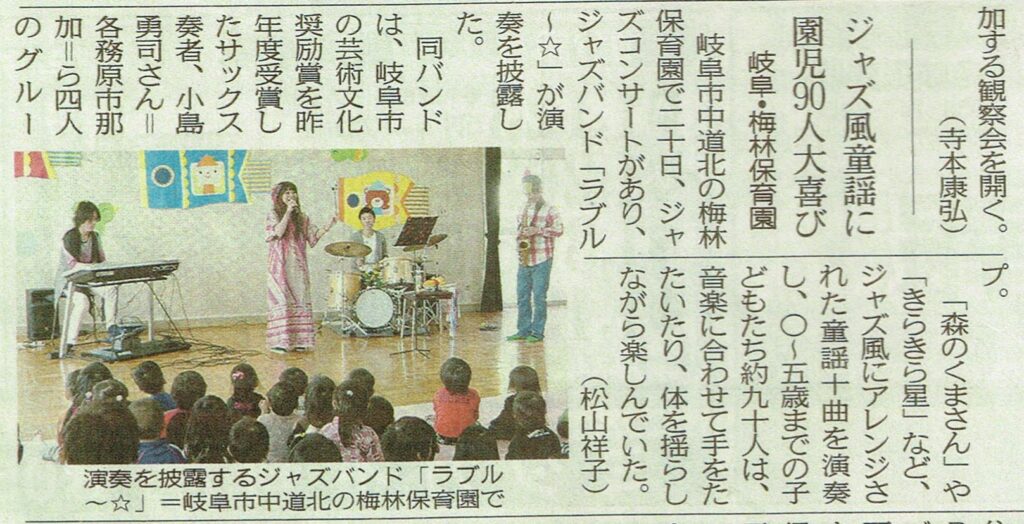 2011年〜 全国の幼稚園・保育園、小学校・中学校でこども向けジャズコンサートを企画。