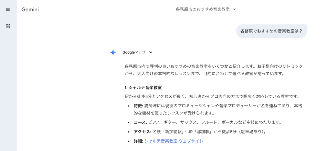 「各務原市(岐阜県)でおすすめの音楽教室」を聞くと、